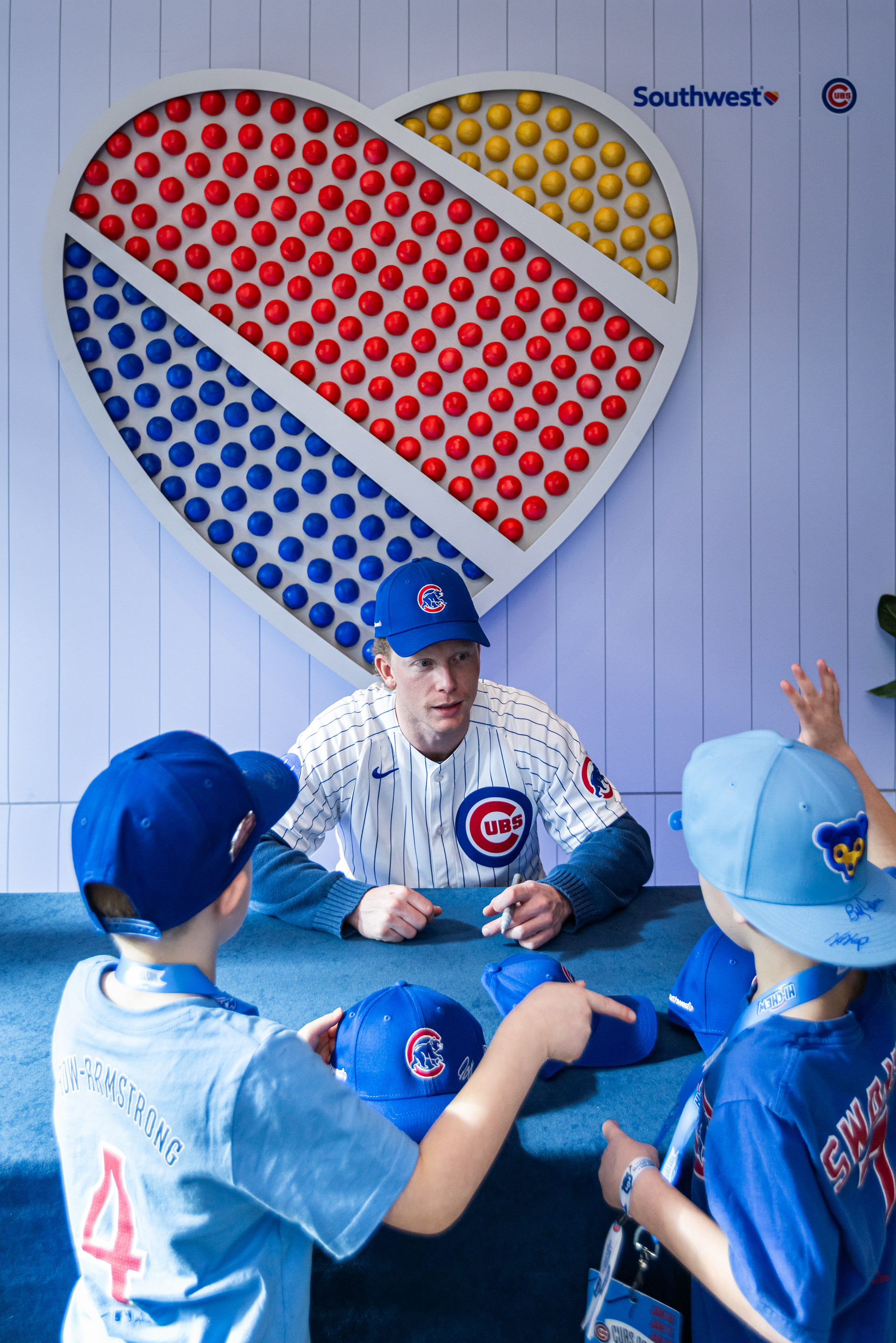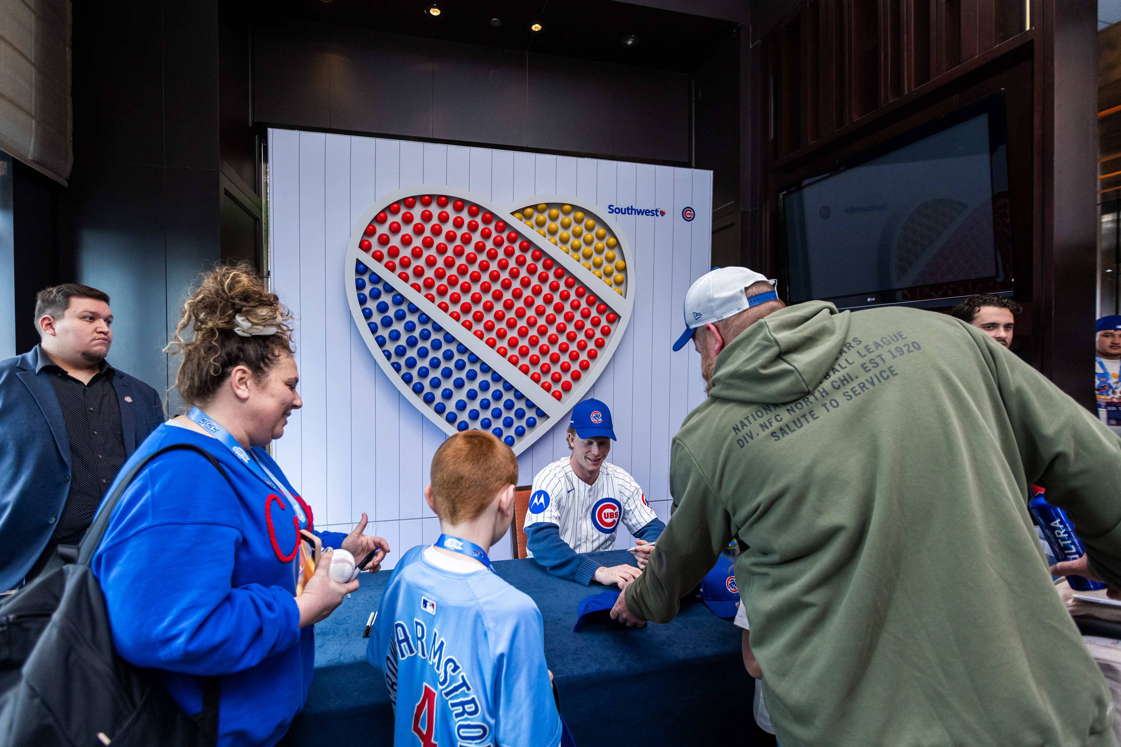 As a surprise for Season Ticket Holders, Pete Crow-Armstrong made a special appearance at the club. Unlike the rest of the day’s talent, which had been promoted online, this visit was completely unexpected for attendees. PCA joined a meet-and-greet and hosted his first public autograph signing, signing the custom Southwest x Cubs hats available exclusively to STHs, creating one of the most talked-about moments of the day.