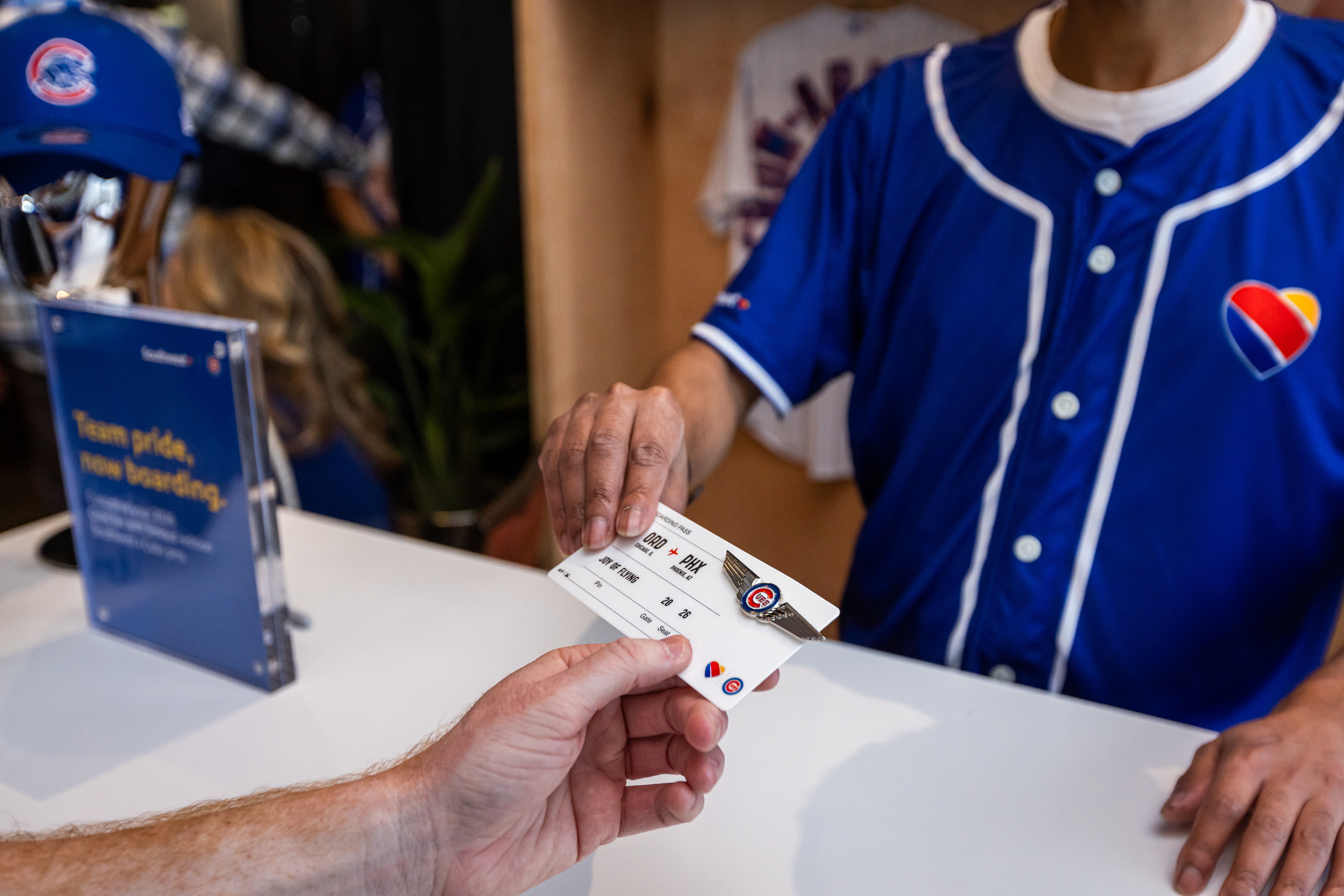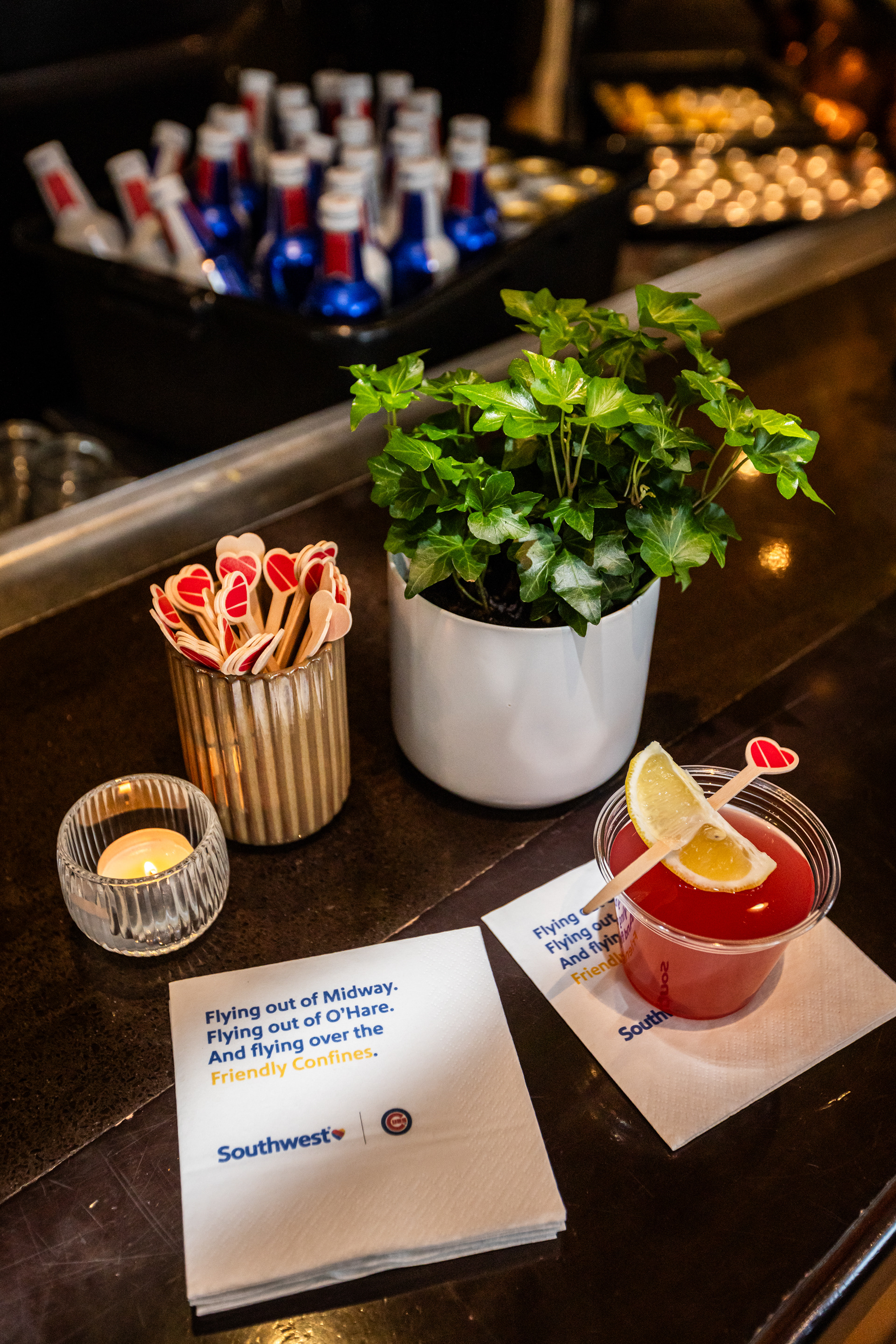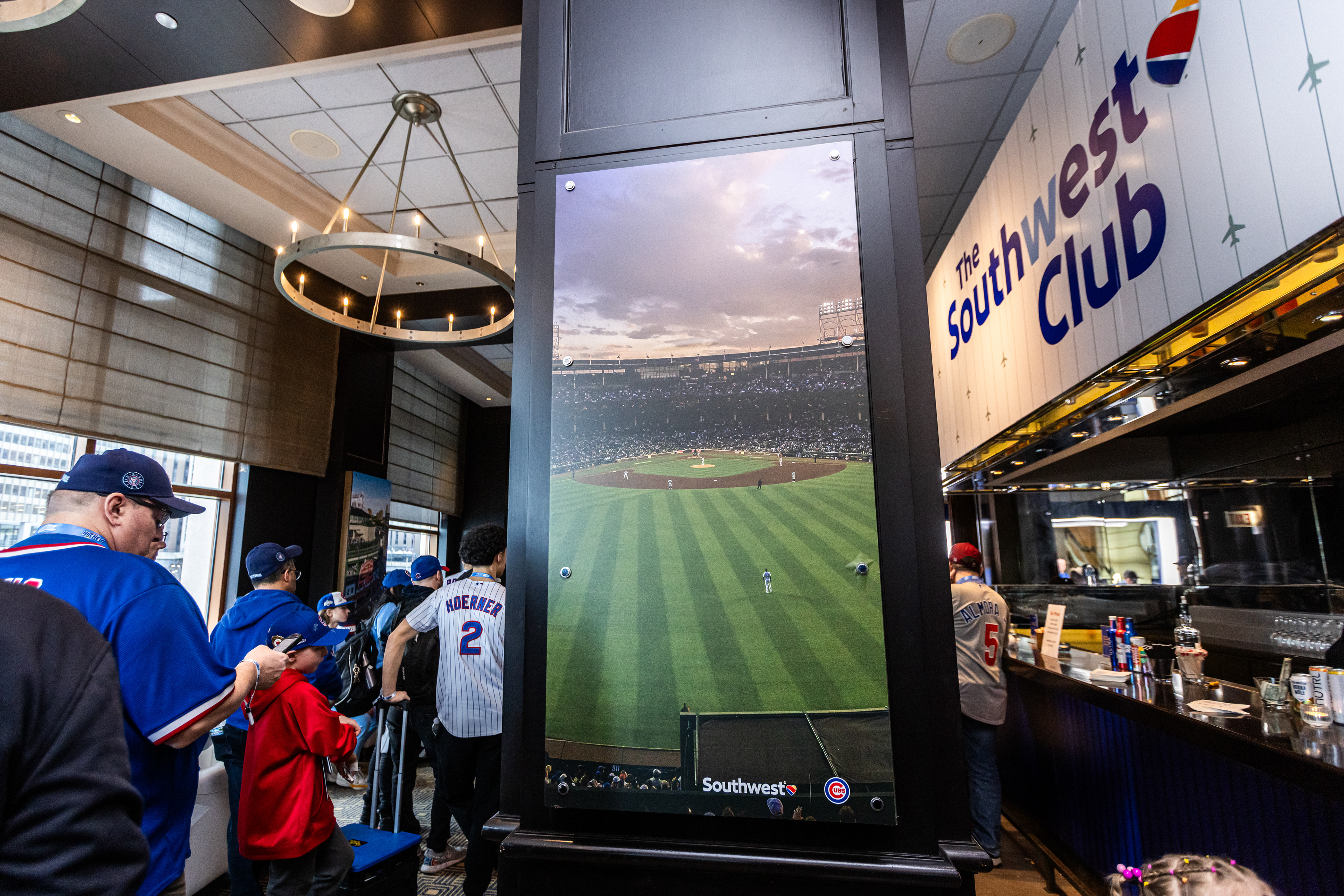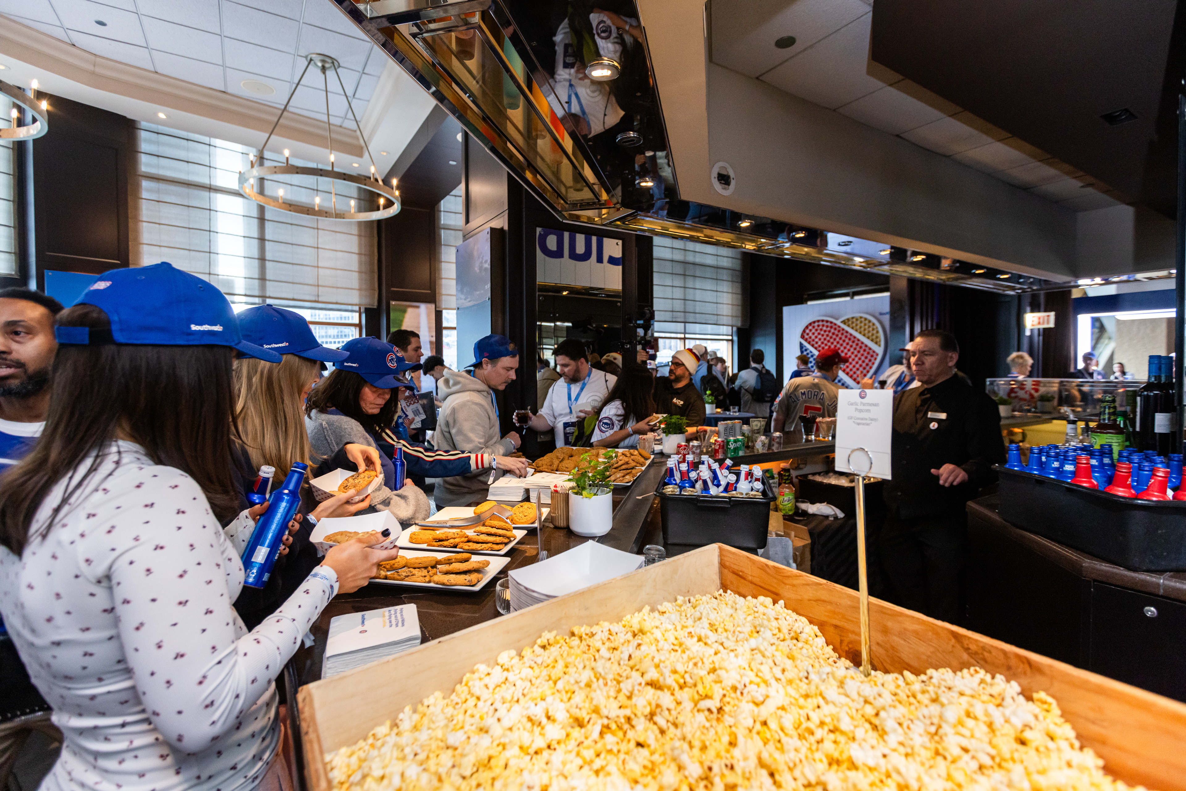 Brand Ambassadors welcomed Season Ticket Holders through an illuminated tunnel into an airport-style lounge featuring Southwest Club perks, including elevated food and a private bar, soft seating, a custom hat and pin station, and opportunities to meet and mingle with Cubs legends, all delivered with signature Southwest-level hospitality.